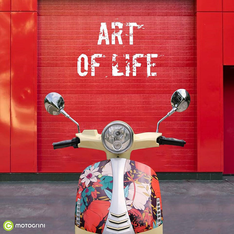 The scooter can be personalized with artistic designs. The scooter can be ordered online and is shipped world wide.
